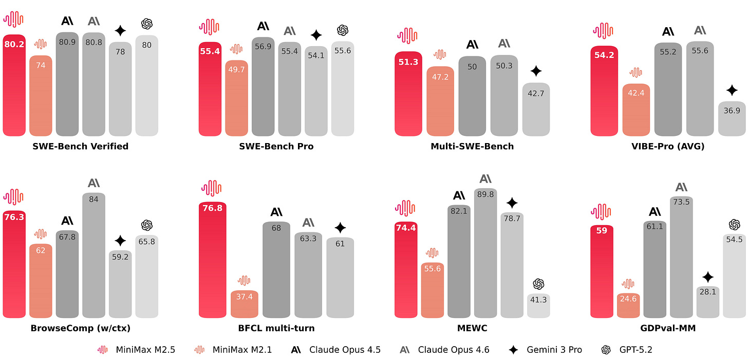 MiniMax M2.5 achieved a staggering 80.2% on SWE-Bench Verified. To put that into perspective, this score places it directly alongside Claude 4.6 Opus, a model that costs nearly 20 times more to operate.