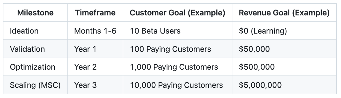 The MSC isn’t a ceiling; it’s a floor. It is the minimum viable outcome that justifies your time, money, and emotional energy. As Ash Maurya advocates, don’t just build a product—build a business model that scales.